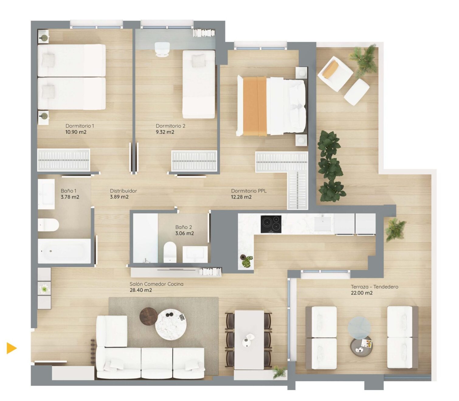 Cada vivienda ha sido diseñada cuidando al máximo la funcionalidad y el detalle. La distribución diferencia claramente la zona de día y la zona de noche, garantizando privacidad, comodidad y un mayor bienestar en la vida cotidiana.