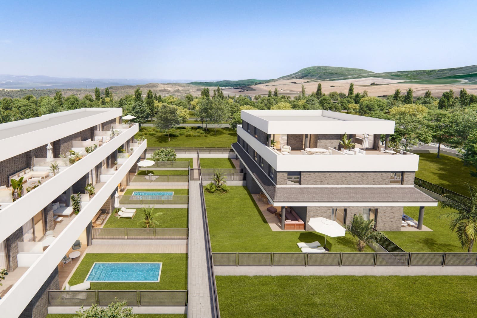 El conjunto, formado por 15 exclusivas viviendas —una agrupación de 11 viviendas adosadas con orientación norte-sur y otro bloque con 4 viviendas en esquina— ha sido concebido para ofrecer espacios que se abren al exterior, invitando a disfrutar de la luz, el paisaje y las espectaculares vistas.