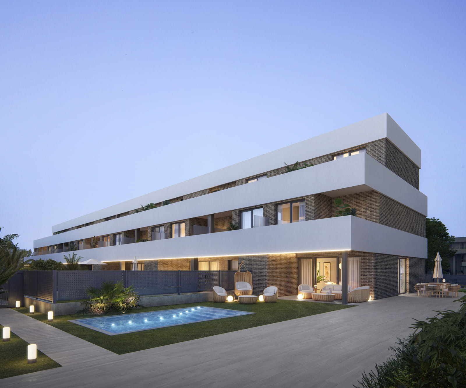 Su diseño contemporáneo y elegante, de líneas horizontales que subrayan las amplias terrazas, crea una arquitectura armónica y luminosa, perfectamente integrada en su entorno.