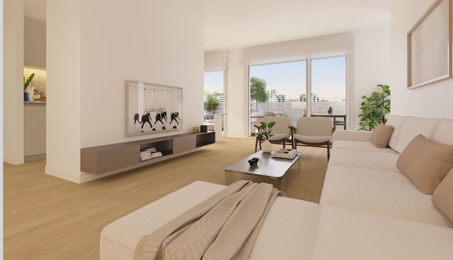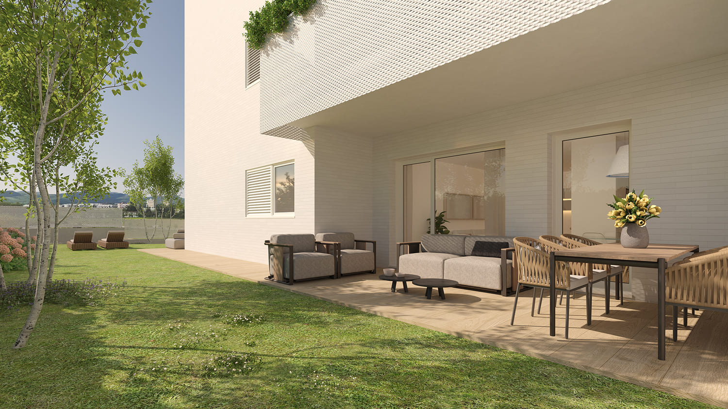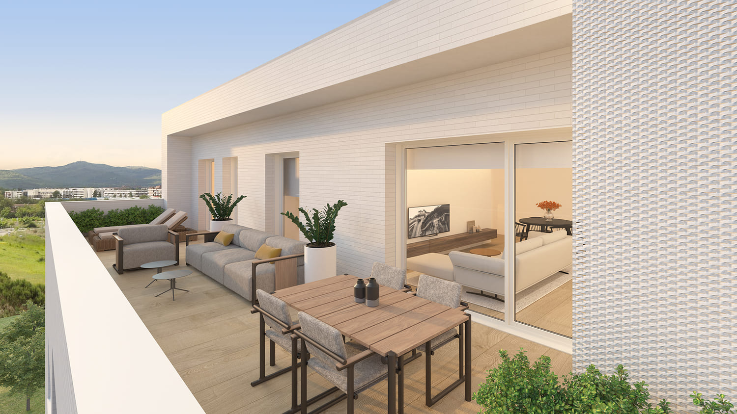 Los ventanales de acceso a las terrazas transmiten una gran sensación de amplitud y luminosidad. Un estilo de vida lleno de bienestar.