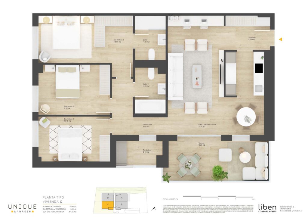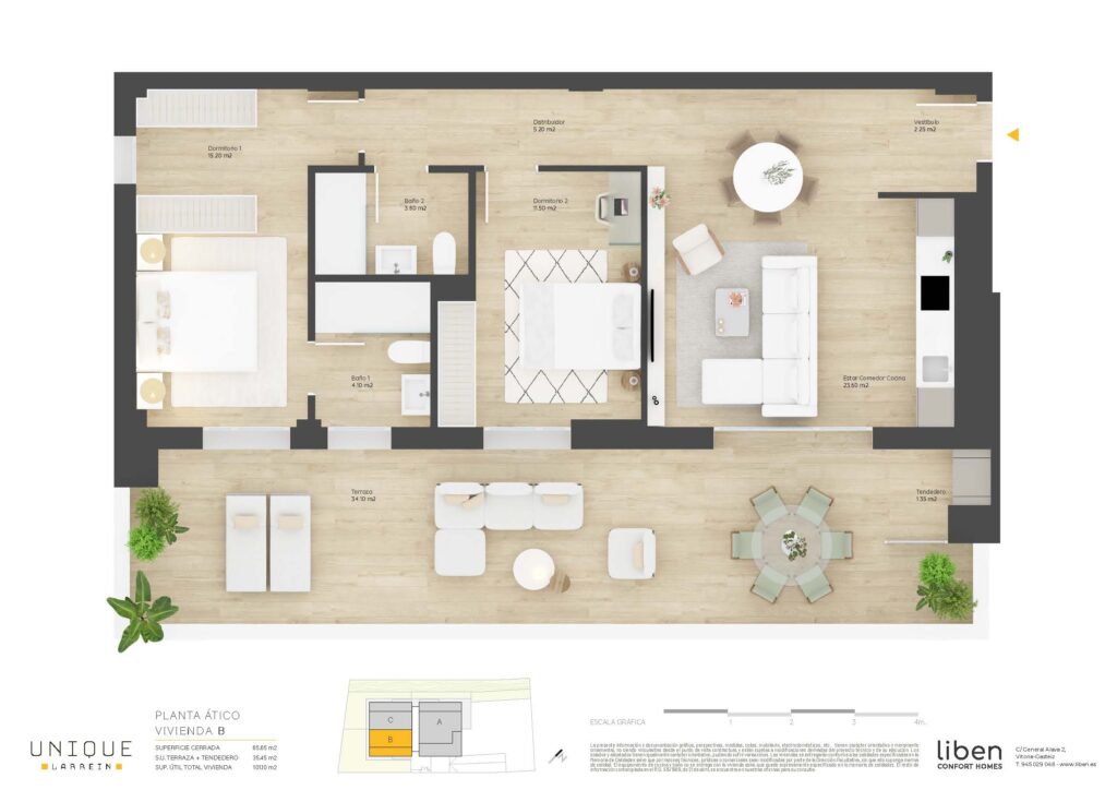 SUP. ÚTIL= 65,65m² + 35,45m² de Terraza